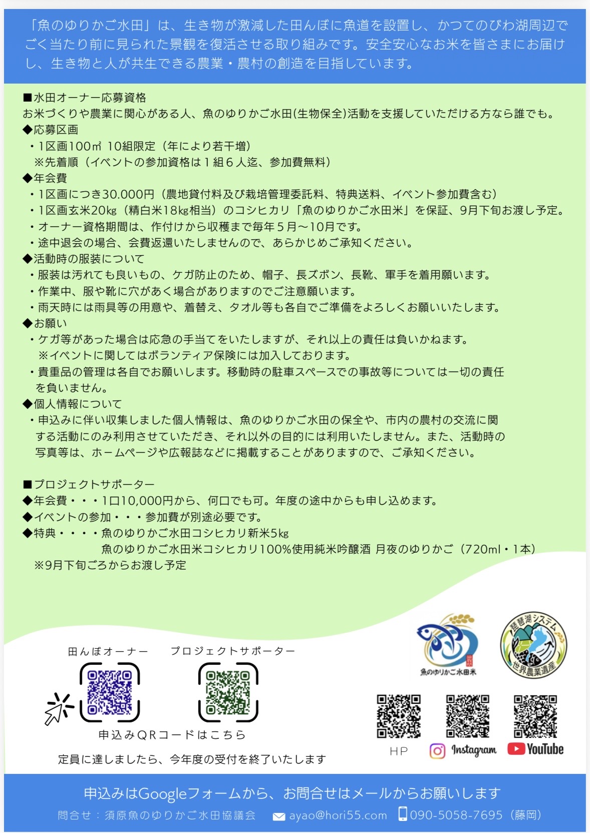 今年も須原の田んぼで農作業を体験し🌾、収穫したゆりかご米🍚を楽しんでいただければ嬉しいです。